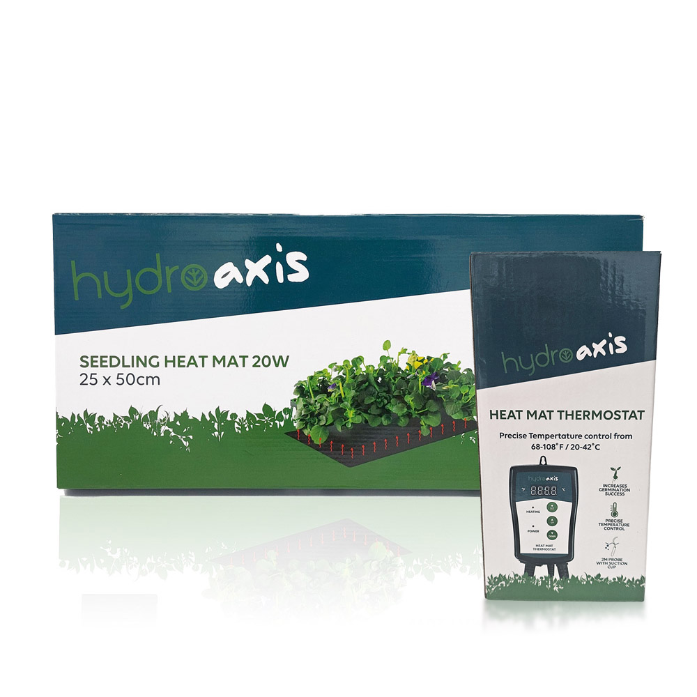 Hydro Axis Seedling heat mat is designed to warm the root area by 5.5 - 11 *C above grow room temperature, which will increase the success rate of seedlings and cuttings.
