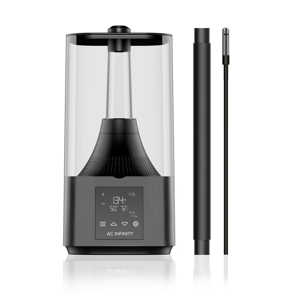 A next-gen 4.5L humidifier designed with smart controls and targeted vapor delivery to obtain ideal humidity levels for successful plant growth. Its body is specially sealed for enhanced water resistance, ensuring no water tank leakage to extend and preserve its long operational lifespan. The controller features onboard humidity and VPD triggering, which utilizes a corded sensor probe for accurate readings, and timer programming. Once activated, the innovative EC ultrasonic vaporizer digitally pulses water to distribute moisture throughout your grow space. This degree of control, together with smart programming, will allow you to fine-tune your climate to facilitate healthy nutrient uptake. This product is a part of the UIS™ platform of grow devices and smart controllers, designed to unite with the AC Infinity app over WiFi to achieve your ideal environment.