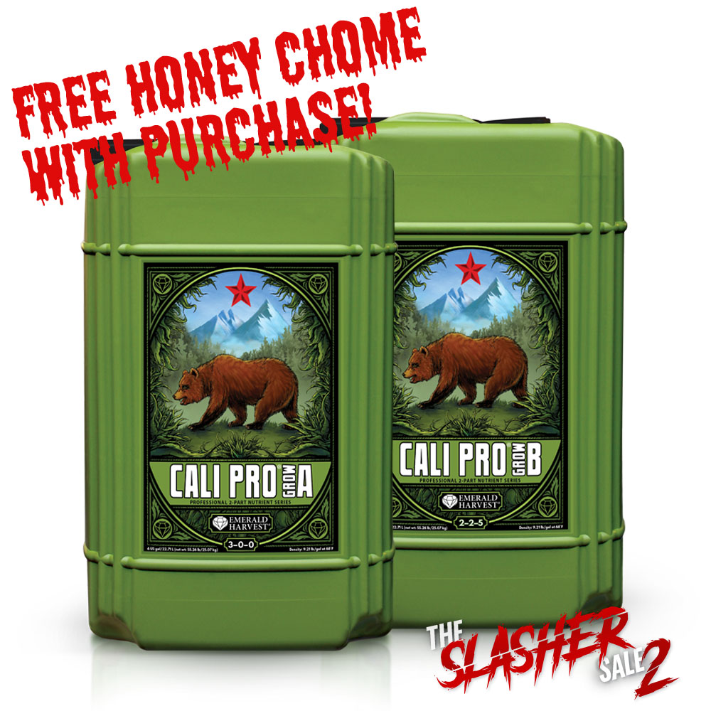 Reach the full genetic potential of your crops with Emerald Harvest Cali Pro Grow A & B and Cali Pro Bloom A & B, our complete 2-part base nutrient series.