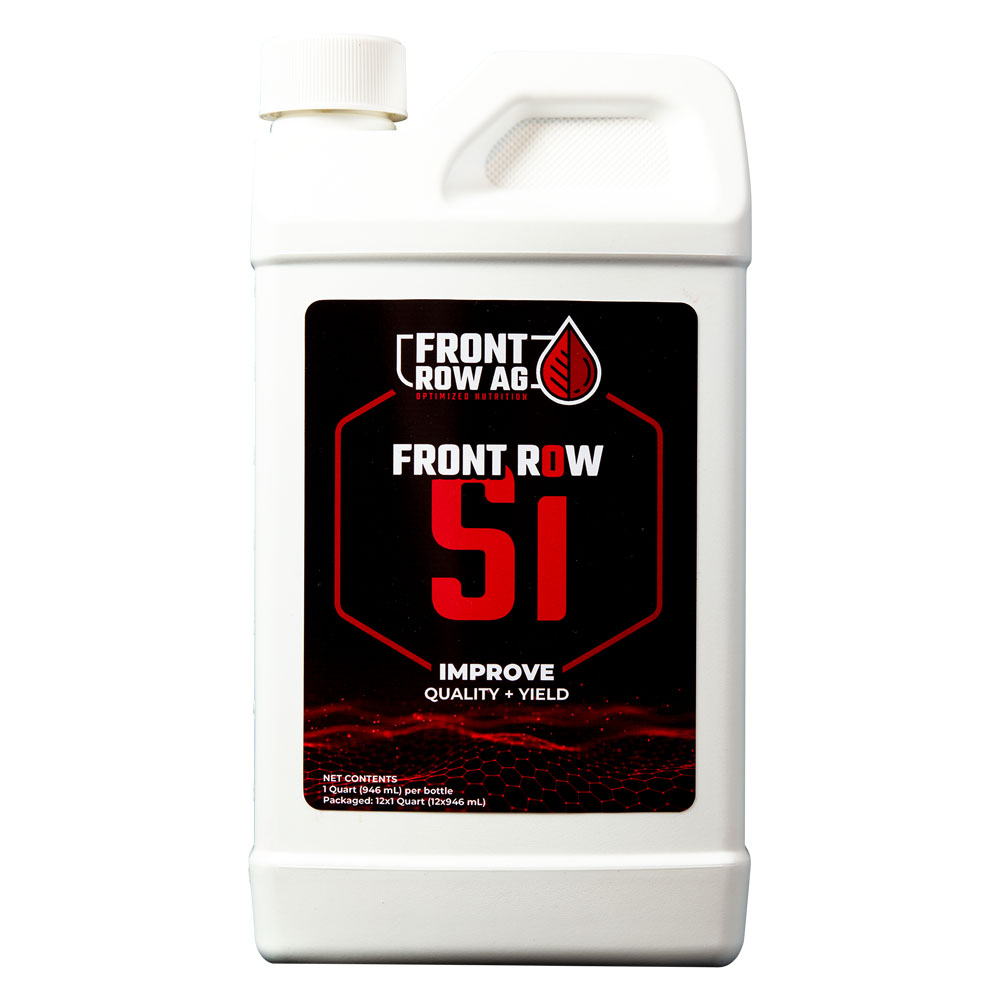 Front Row Si is a 10% monosilicic acid (MSA). Monosilicic acid is optimized for increasing yield, cell thickness, preventing biotic pathogens, and abiotic stress. Considerable yield increases are gained when monosilicic molecules are incorporated into the cells adding individual strength and weight. Healthier cells lead to better and more productive metabolism. Monosilicic acid and silicates are also critical to metabolic pathways helping to push performance. Silicates and monosilicic acid also enhance the natural plant immune response, both helping to prevent fungal pathogens and to mitigate the effects of abiotic stressors including temperature, light, and drought. Additionally, monosilicic acid competes with heavy metals for absorption at the roots, preventing the uptake of harmful ions.
