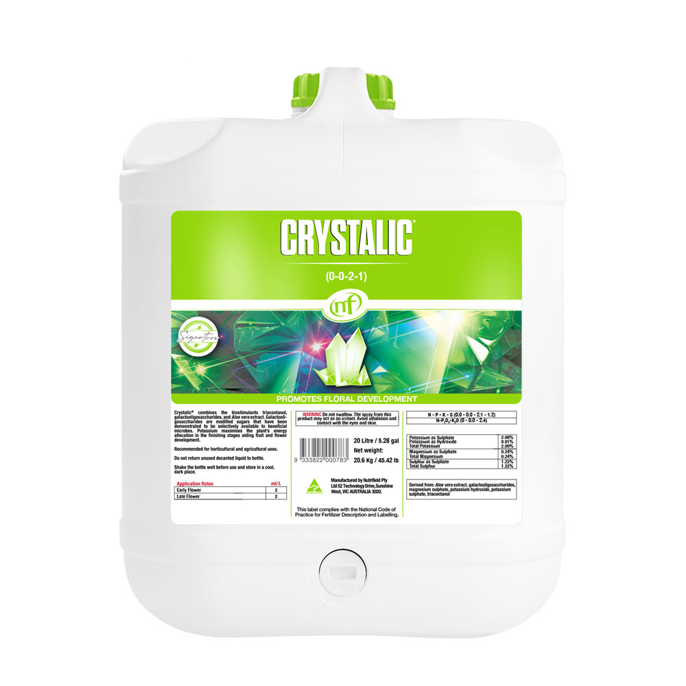 Crystalic® works by supporting your plant’s metabolism and the good microbes in your root zone, leading to denser flowers, better aroma, and more reliable results. The added potassium and sulphur help your plants stay healthy and productive, all without throwing your feeding program out of balance.