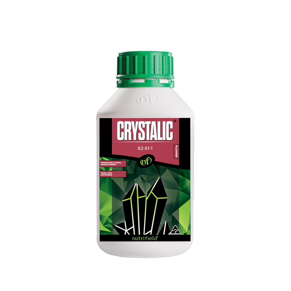 Nutrifield® Crystalic® is a combination of rare earth minerals, amino acids, and fulvic acid that induces exceptional secondary metabolite production in plants. It is ideal for all flowering and / or fruiting plants and will give you dramatically improved fruit and vegetable flavours, intensified floral fragrance, increased essential oil production, and will stimulate the plant's immune system. It will also increase flower development and size by supplying the extra carbohydrates to boost plant metabolic processes which accentuate growth.