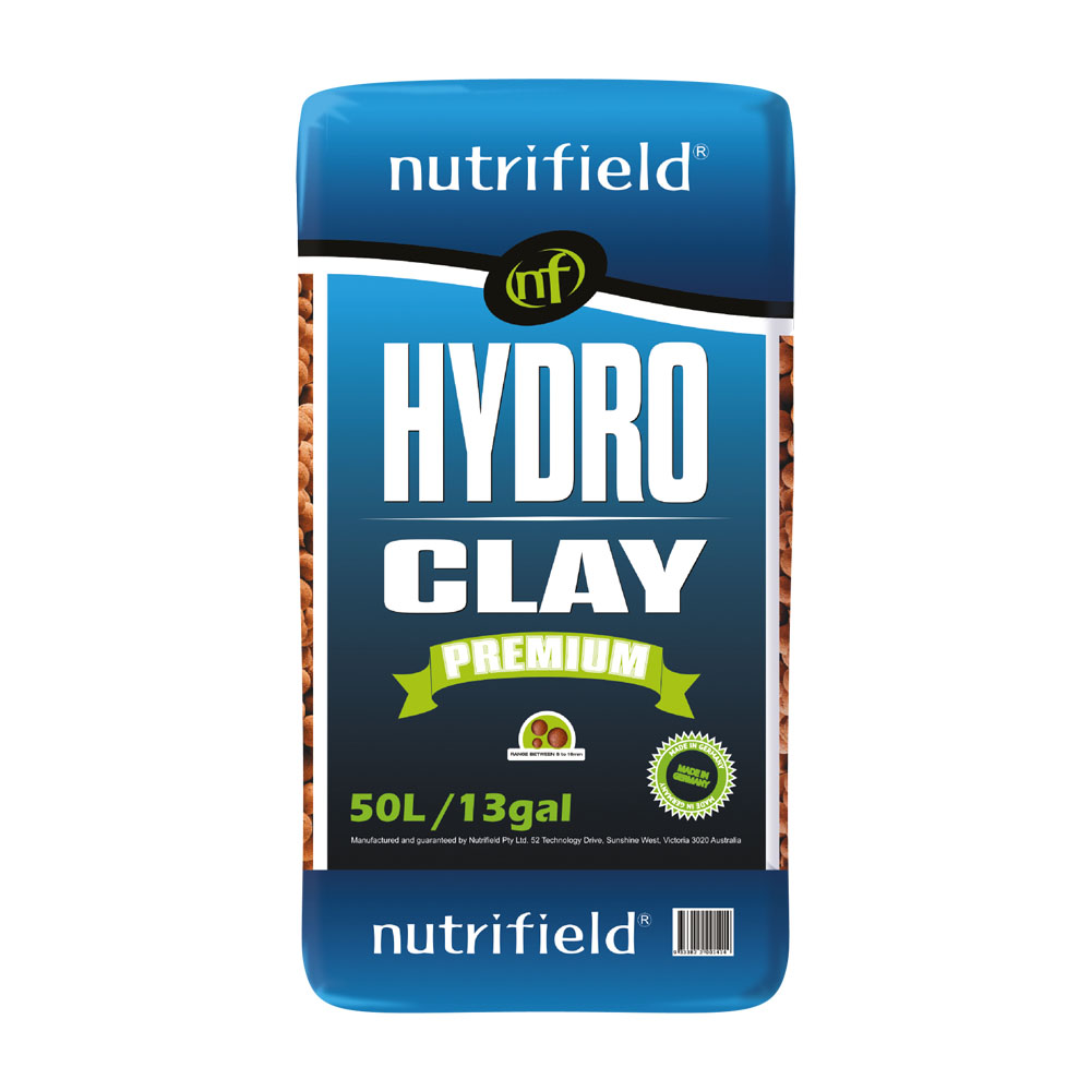 NUTRIFIELD HYDRO CLAY HYDROPONIC GROWING MEDIUM NF GERMAN MADE GERMAN MADE Nutrifield® Hydro Clay starts with the highest grade natural clay following a strict grading formula and is assembled via granulation method. By following this process we guarantee that you get a more consistent spherical shape and size with a more uniform and rigid structure that resists breaking. You get a consistent 8-16mm round shape that is rigid and made from 100% freshly mined raw clay material free of impurities and ready to use straight out of the bag.